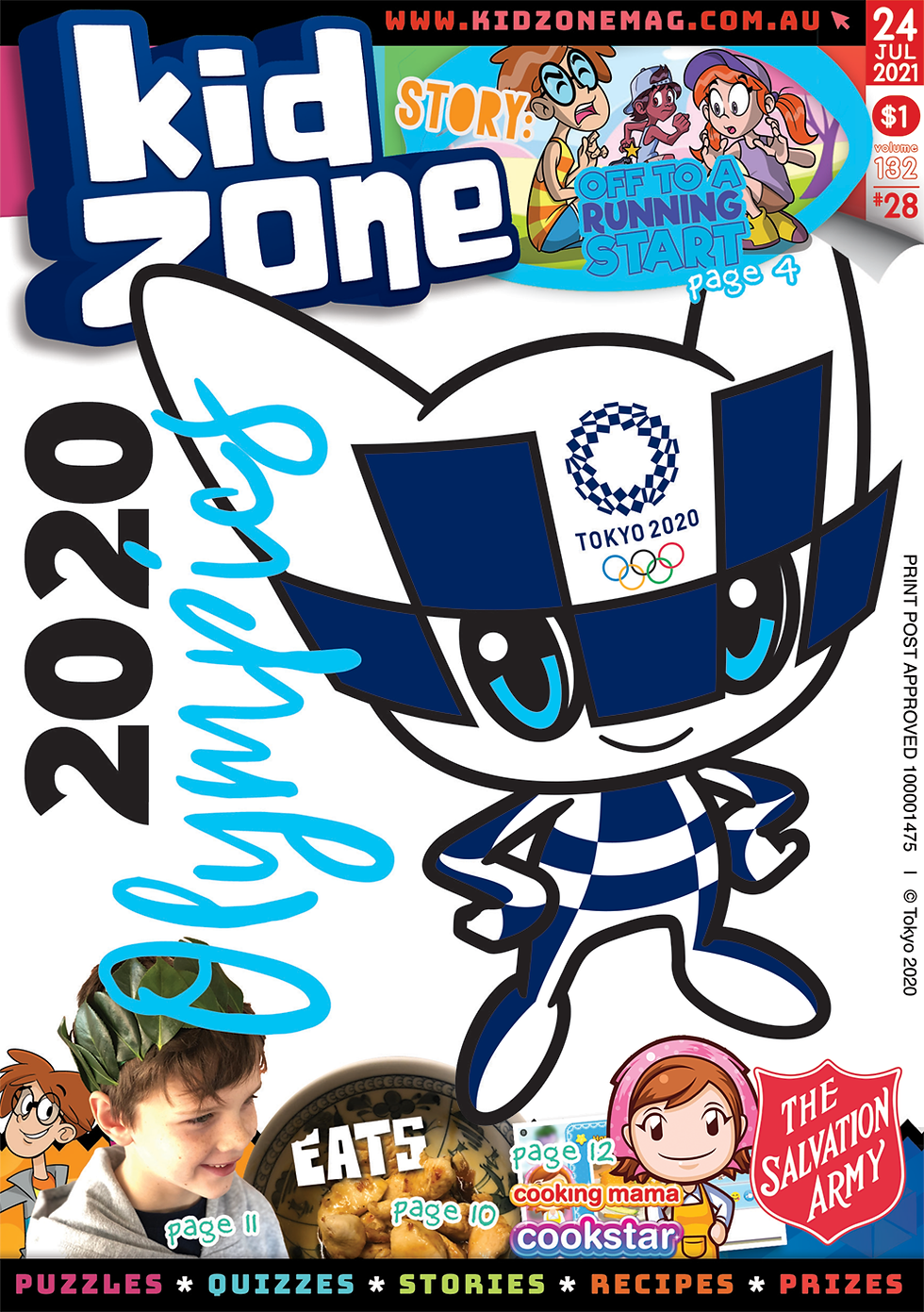 After a year-long delay, the Games are finally set to start! In this week’s Kidzone, we give you the lowdown on all the cool, new sports making their Olympic debut in Japan. We meet Olympic mascot Miraitowa, Traveller takes a tour of Tokyo, Cheffy makes teriyaki sauce and Oliver makes an Olympic wreath. In our awesome story, the KZ gang go for gold in a challenging running race. Bit Boy checks out ‘Cooking Mama: Cookstar’ and there’s loads of puzzles and the colouring comp to enjoy as well.